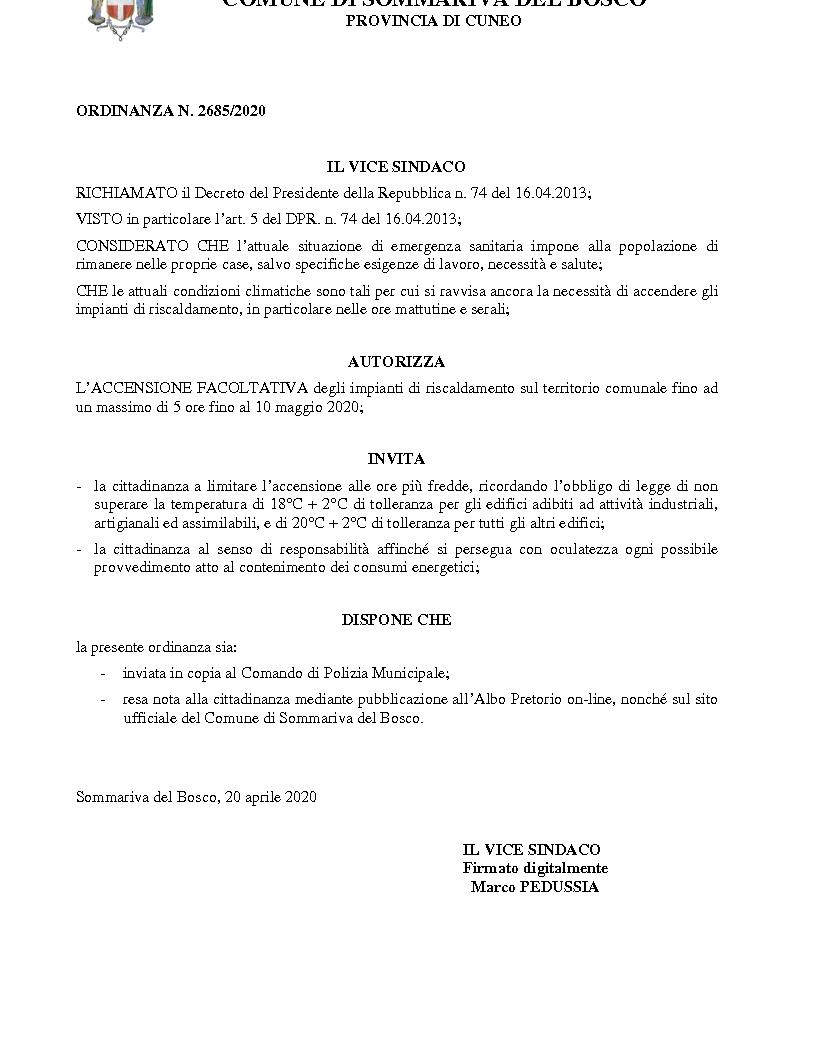 Ordinanza N 2685 2020 Autorizzazione Accensione Facoltativa Impianti Riscaldamento